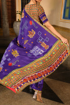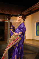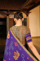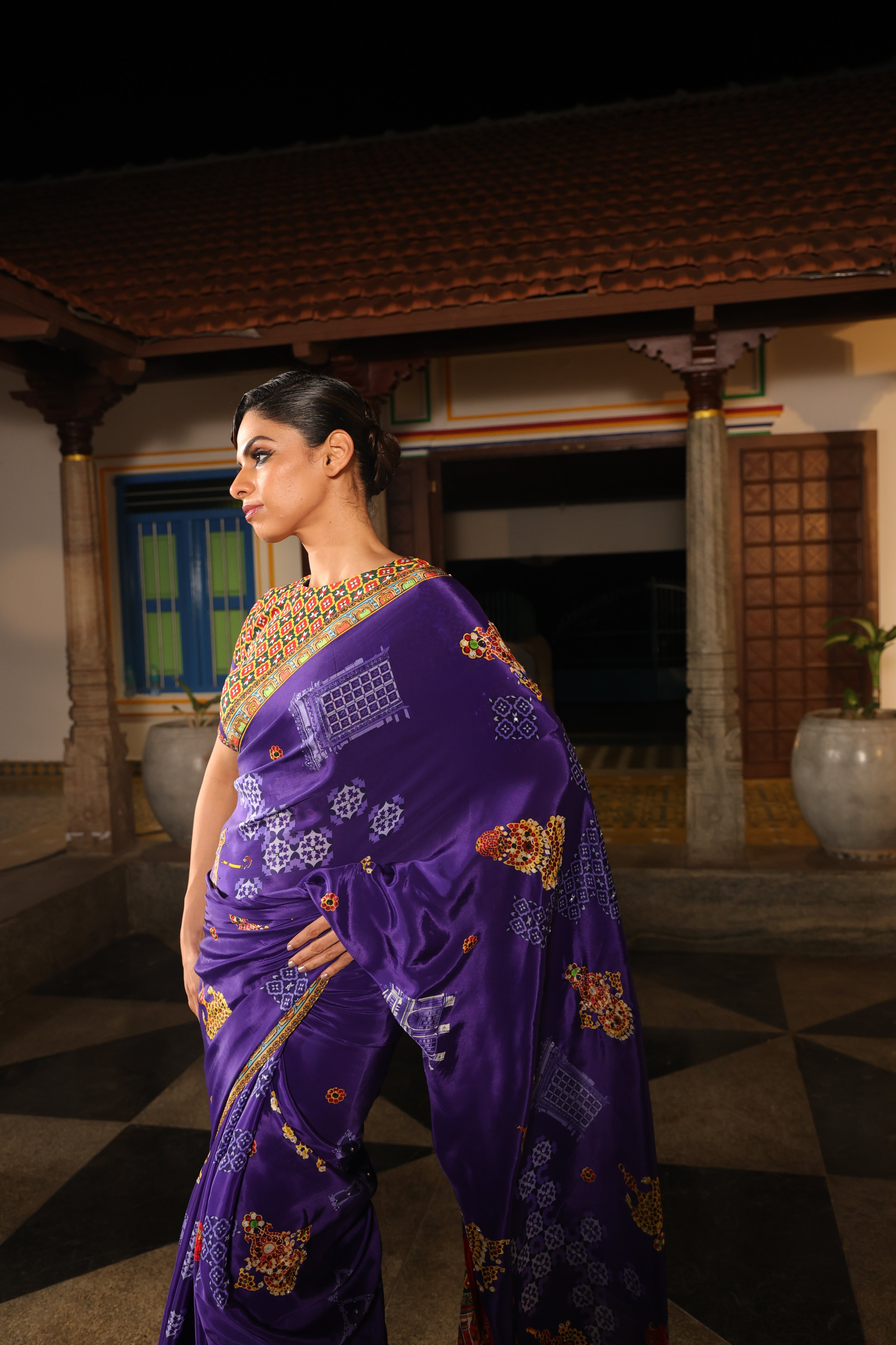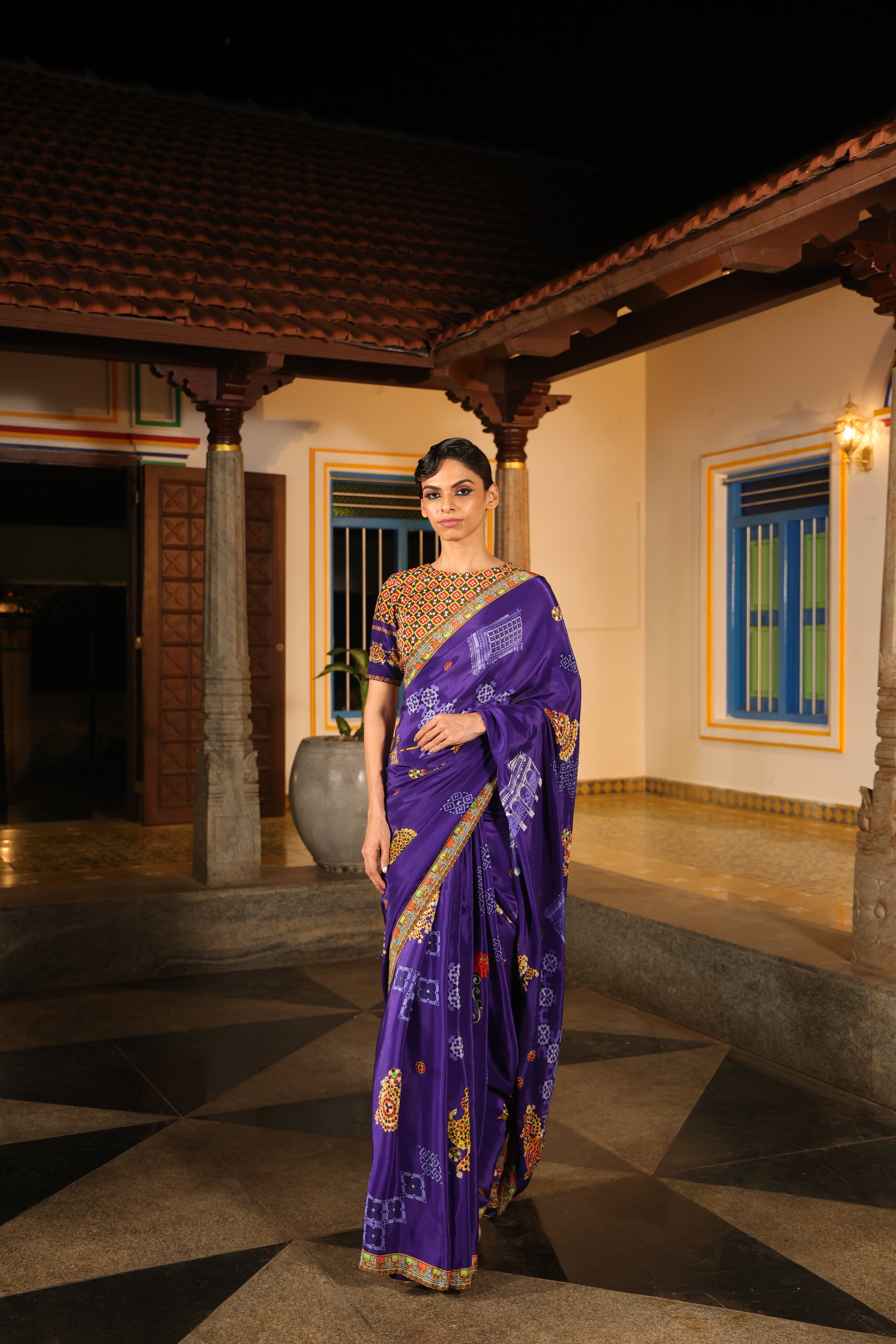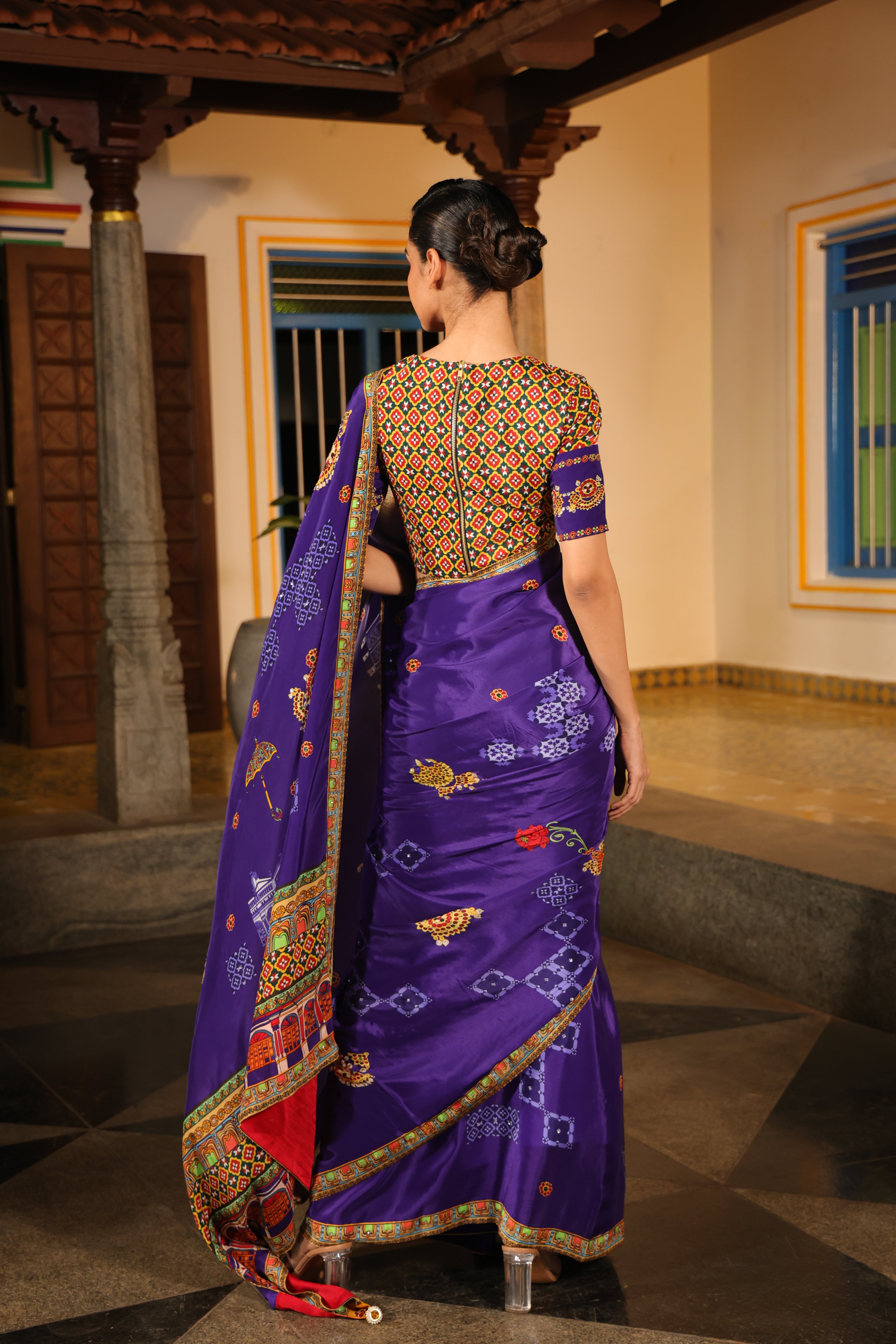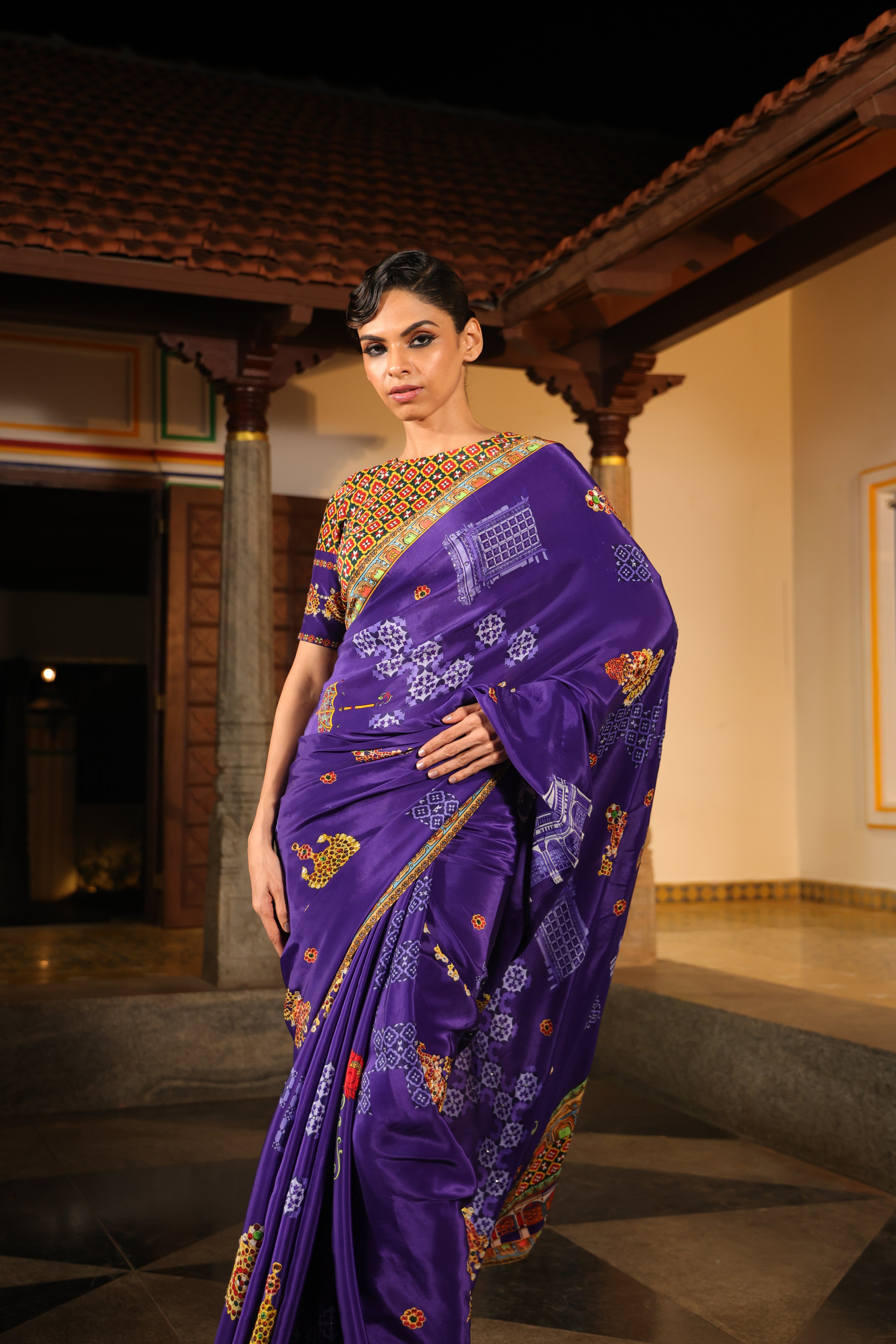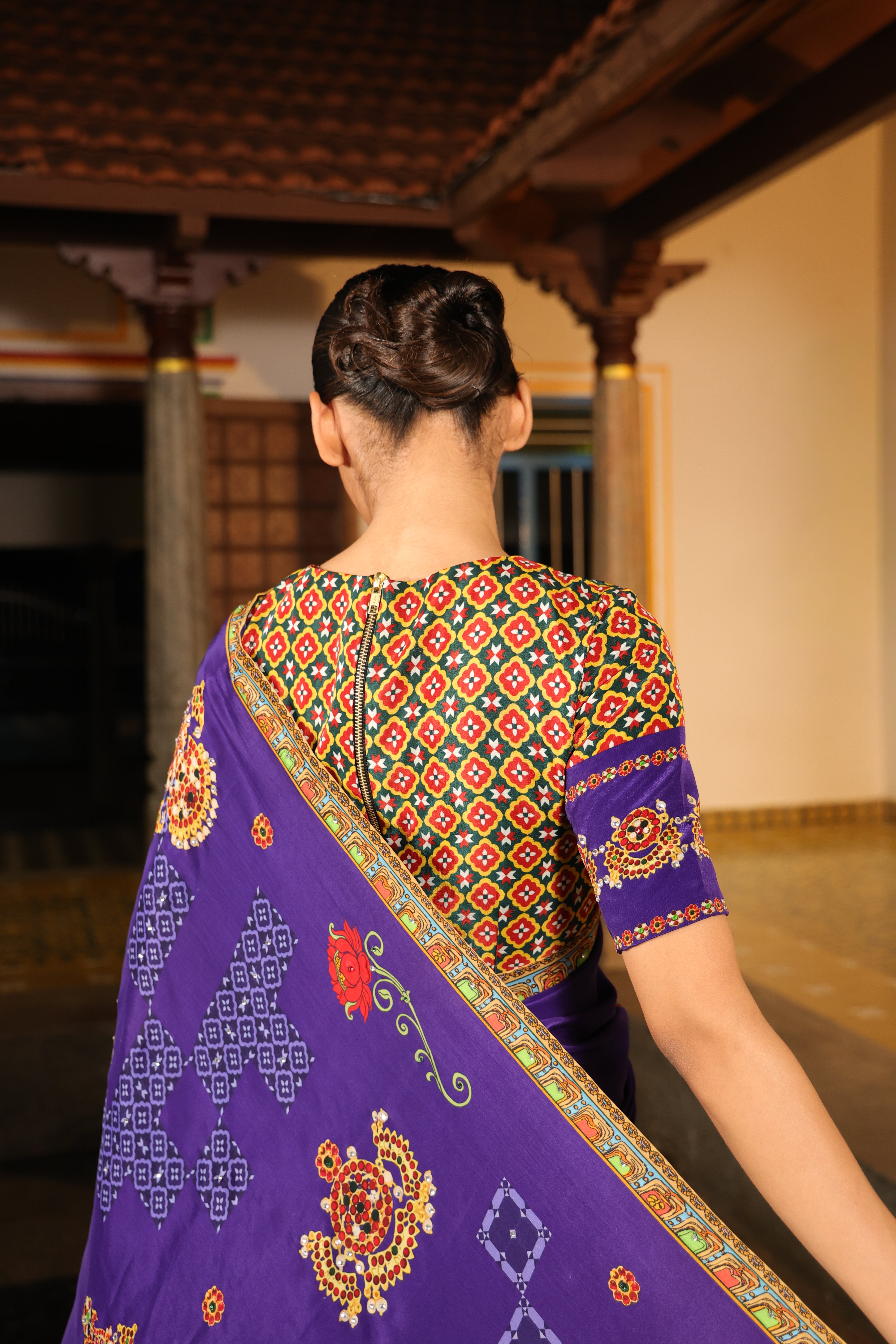 5.5 Meters with chettinad architechture print and jewellery print embellished with stone embroidery.
