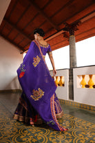 Organza dupatta with chettinad architechture print and jewellery print embellished with stone embroidery and kemp jewellery.