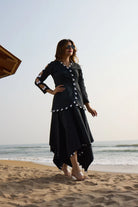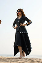 V - Neckline with   Black  and  White  Scallop work, 3/4th  Sleeves with scallop applique,