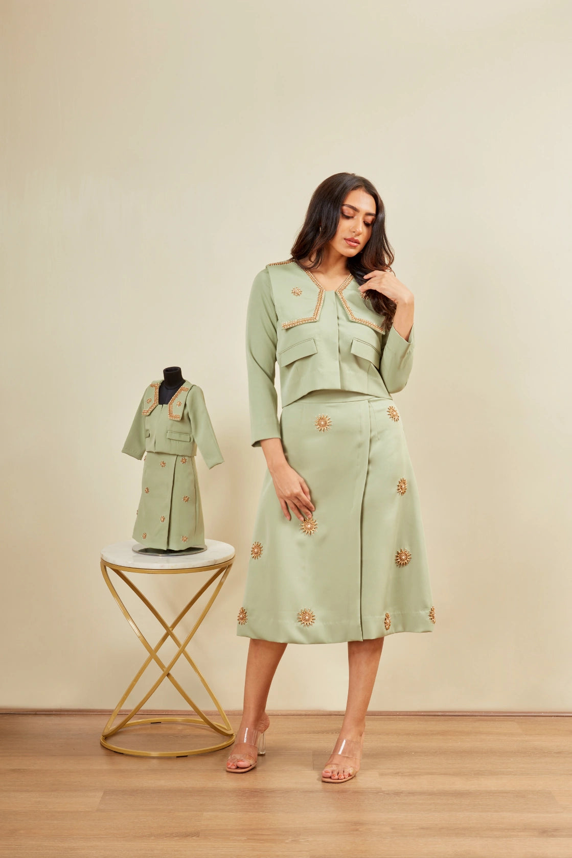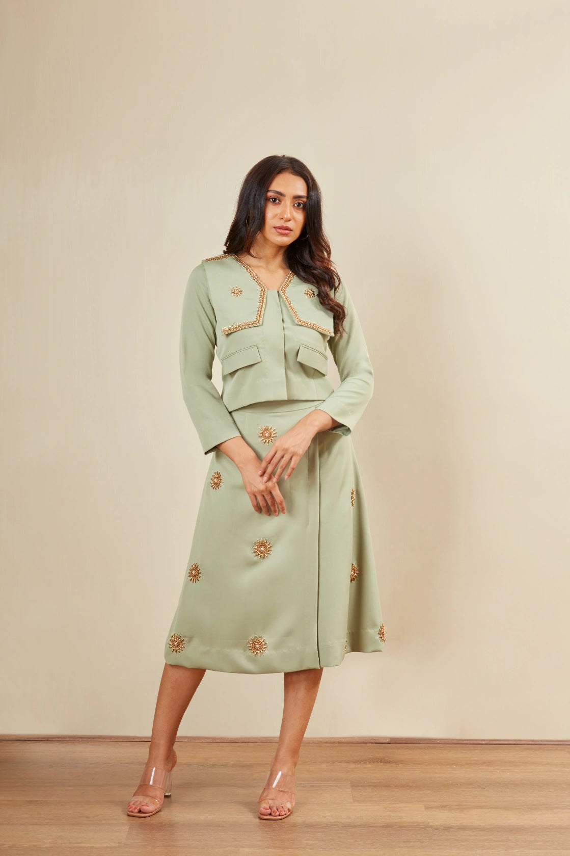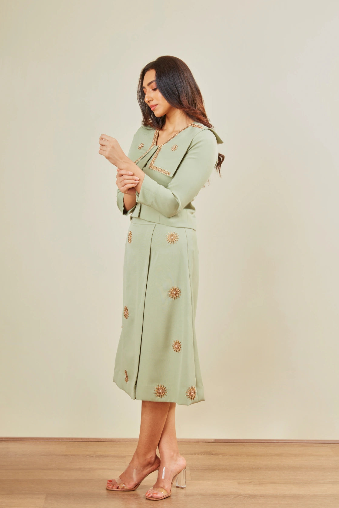 Full sleeve -Front open top -Copper bead embroidery -Pearl embroidery -Copper tube work -Round motif