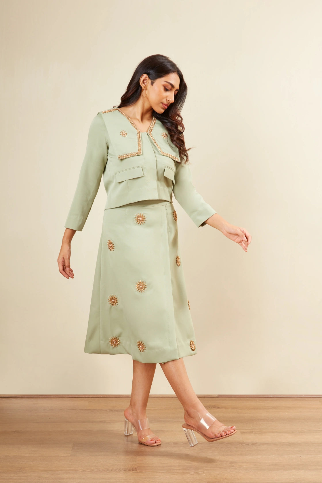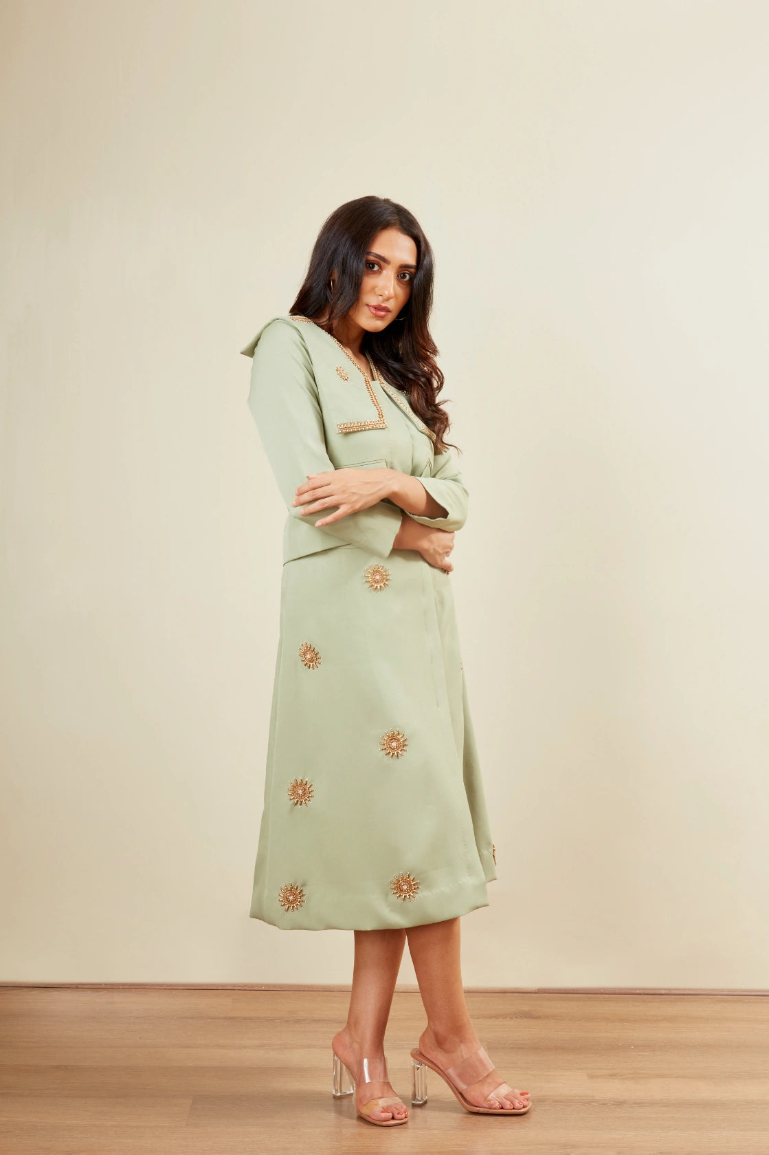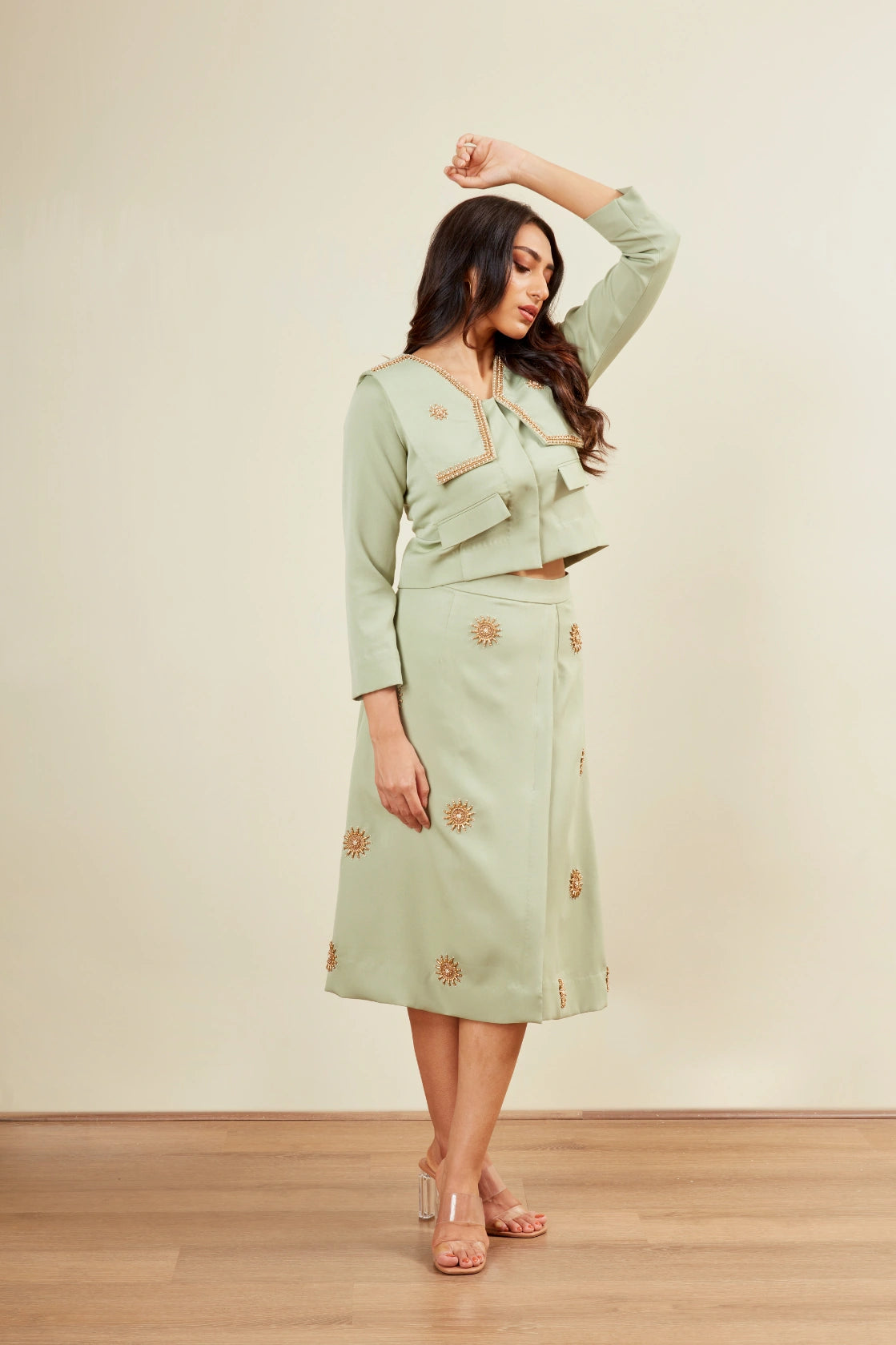 Full sleeve -Front open top -Copper bead embroidery -Pearl embroidery -Copper tube work -Round motif