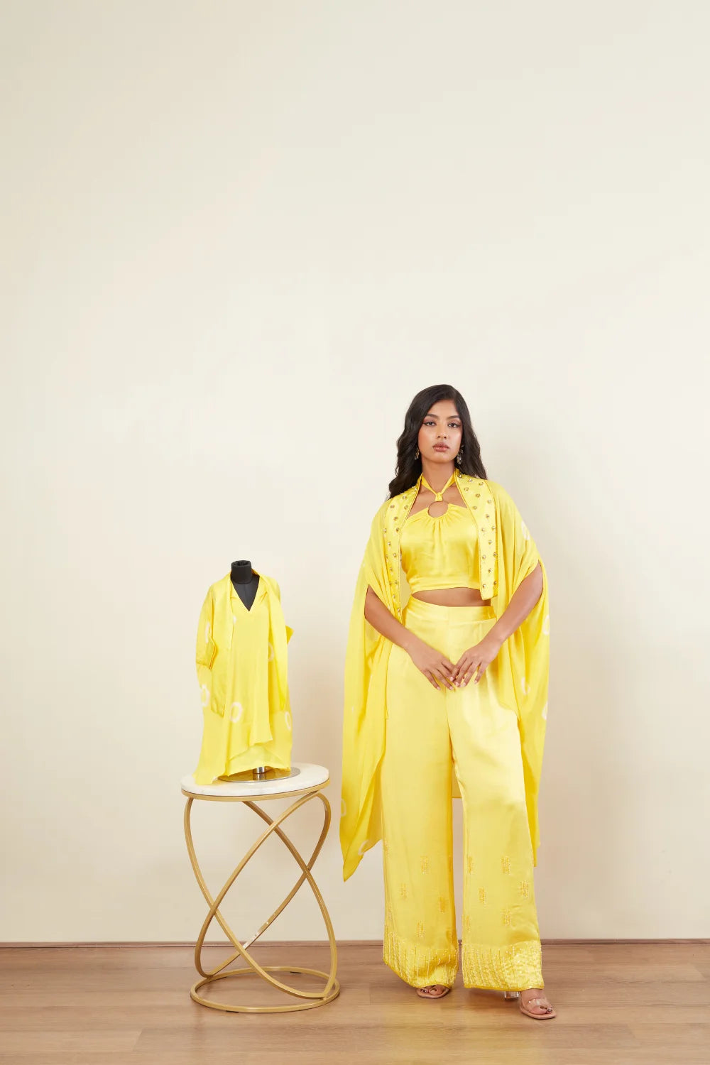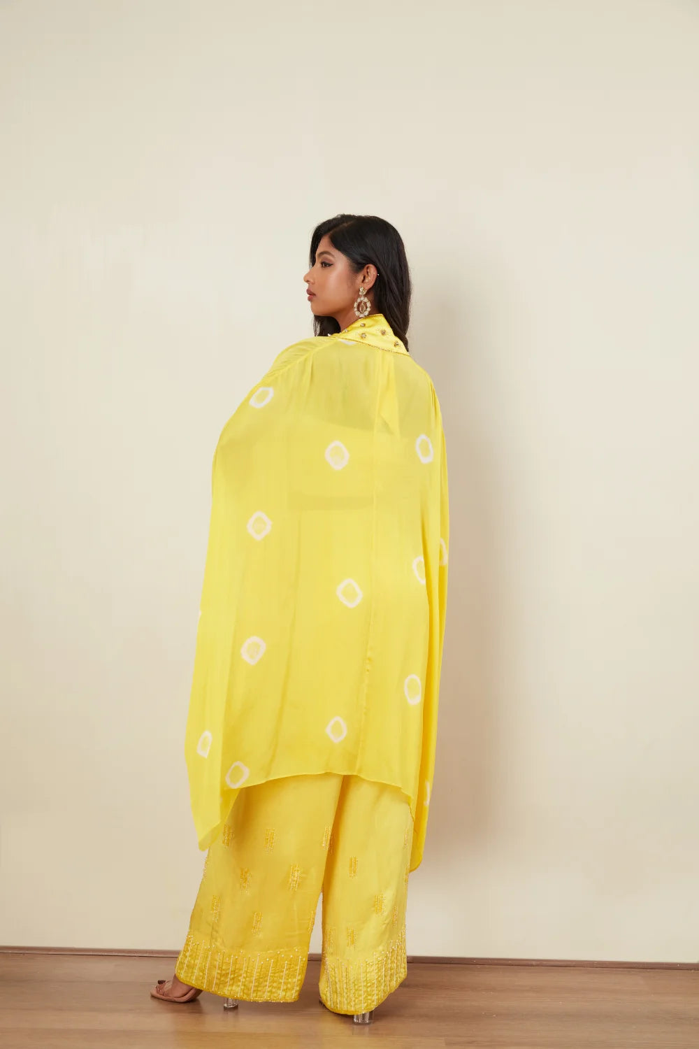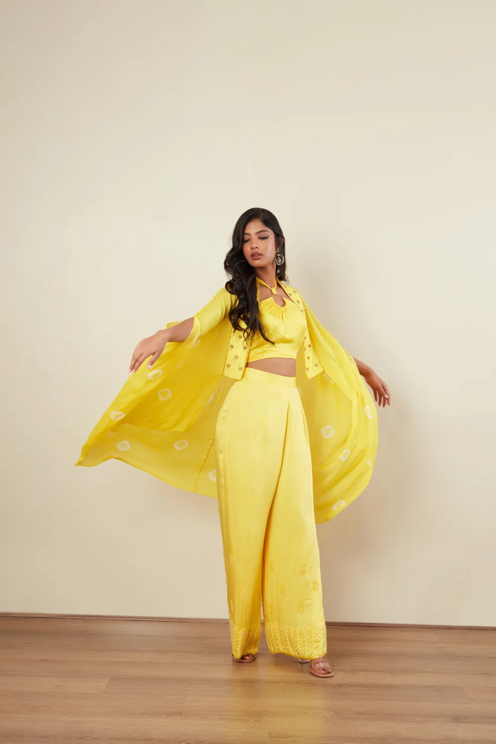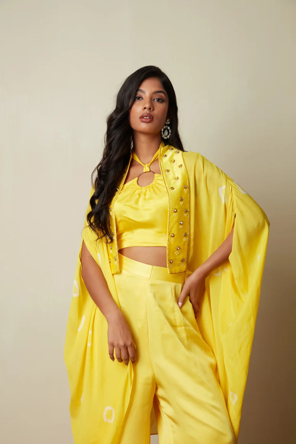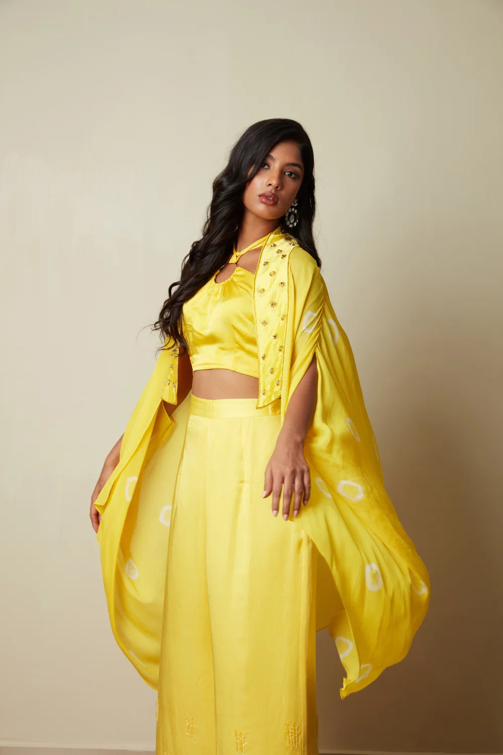 Crop top Bandini cape Rock stud embroidery Loose Plazoo Pearl Embroidery Cape jacket