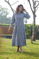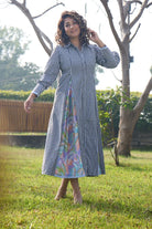 Shirt collar, front open, Full Sleeve, 3/4th dress, printed pleate