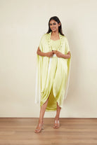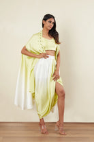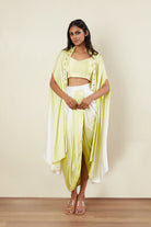 Long Cape -Crop Top -Dhoti Skirt -Emerald Stone, Tubes & Pearl Embroidery