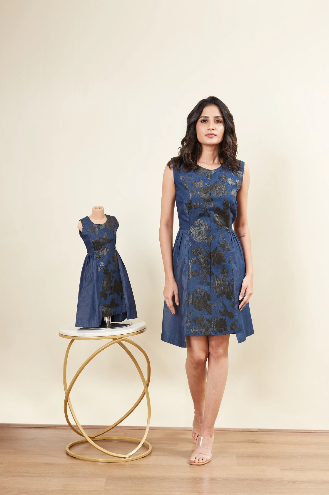 Boat Neck -Sleeveless -Black lasercut Embroidery -Floral motif