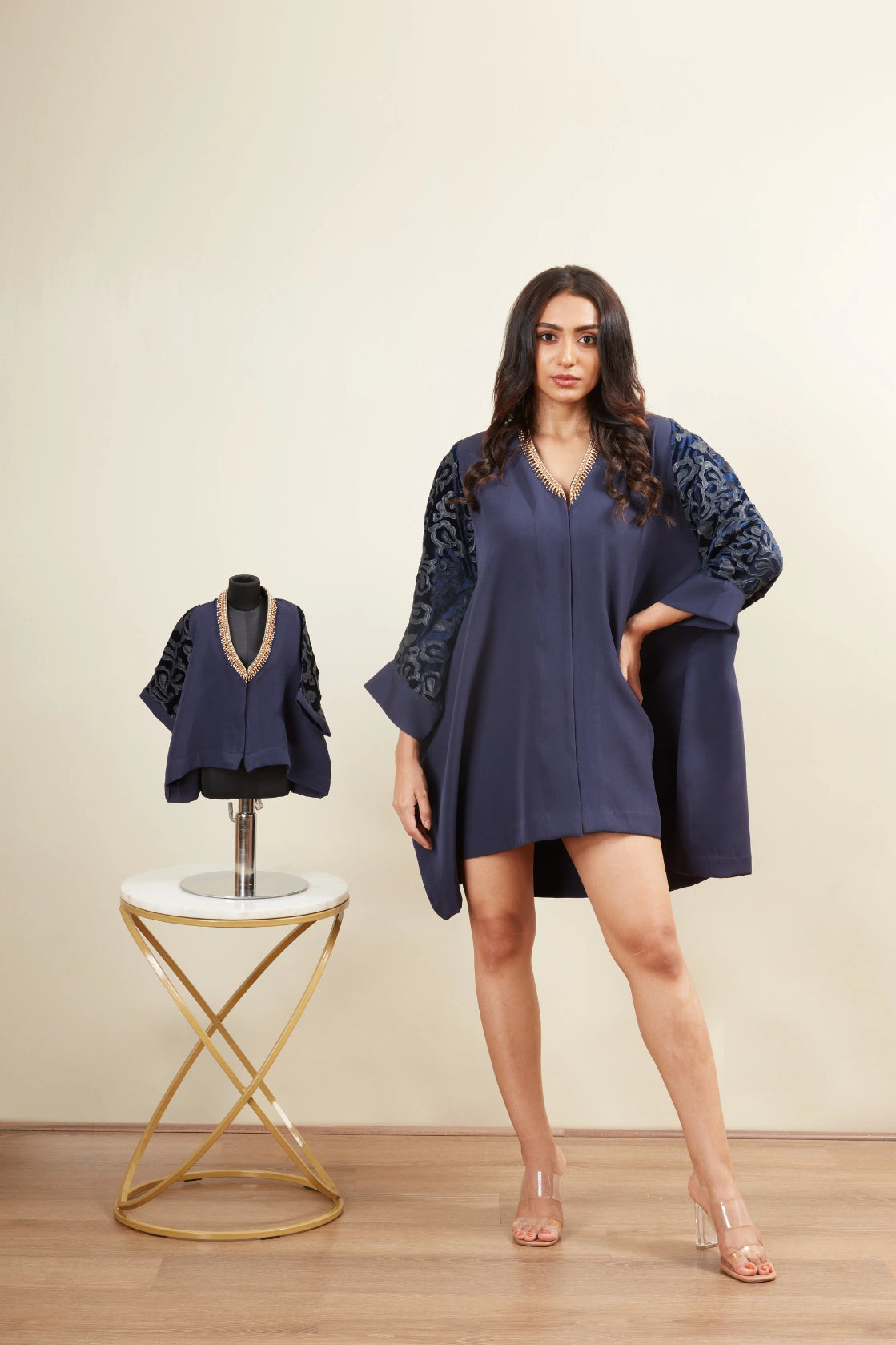 V neck -Applique on velvet -Raglan sleeve -Copper bead embroidery -Pearl embroidery -Copper tube work