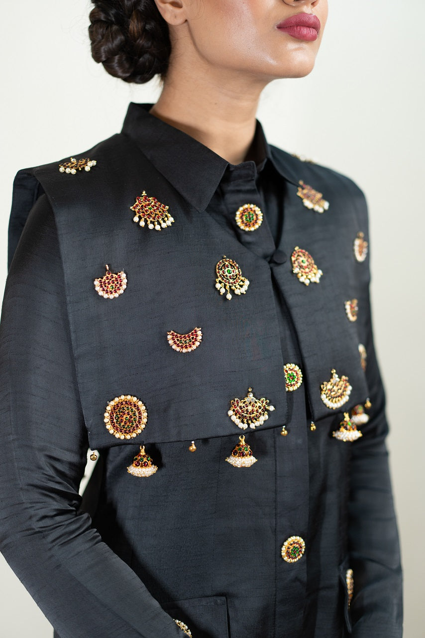 Full Sleeves -Collar -Pocket -Front open -Cape -South Indian Jewellery Embellishment