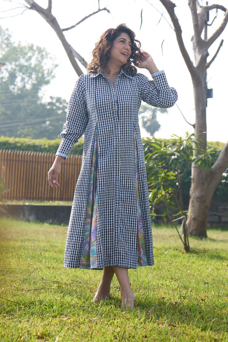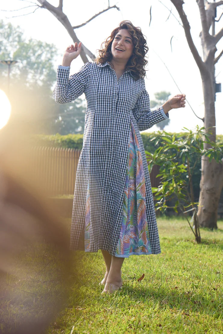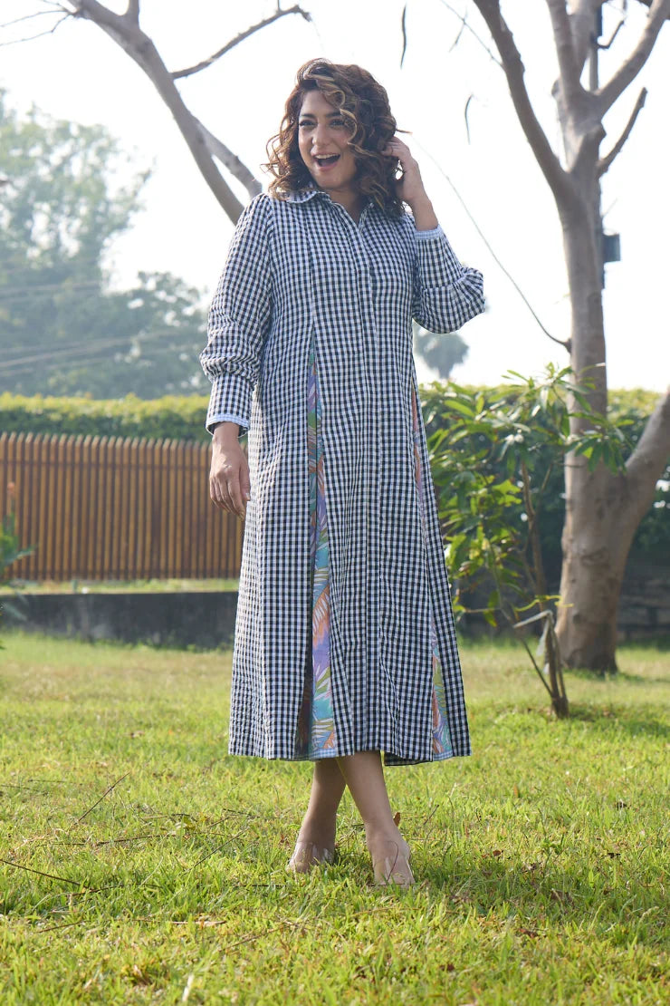 Shirt collar, front open, Full Sleeve, 3/4th dress, printed pleate