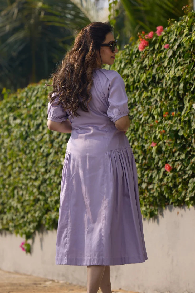 This Stunning lilac dress is a vision of elegance and sophistication. The Soft, Pastel hue evokes the beauty of spring blooms and adds a touch of romance to any occasion.
