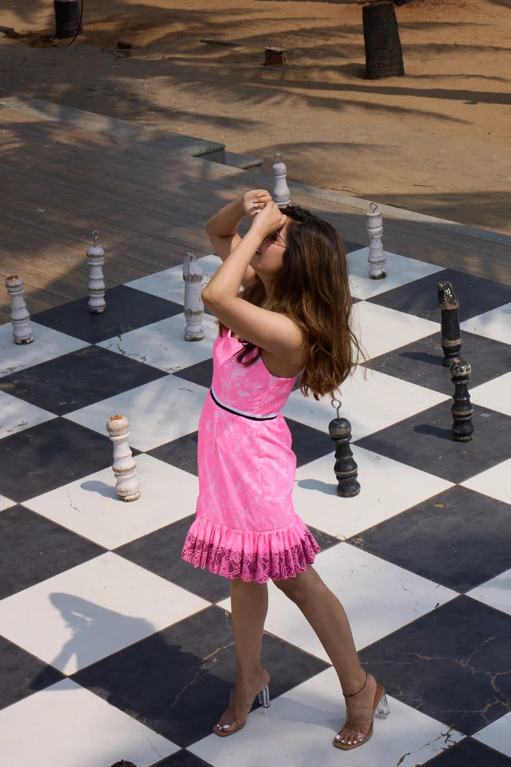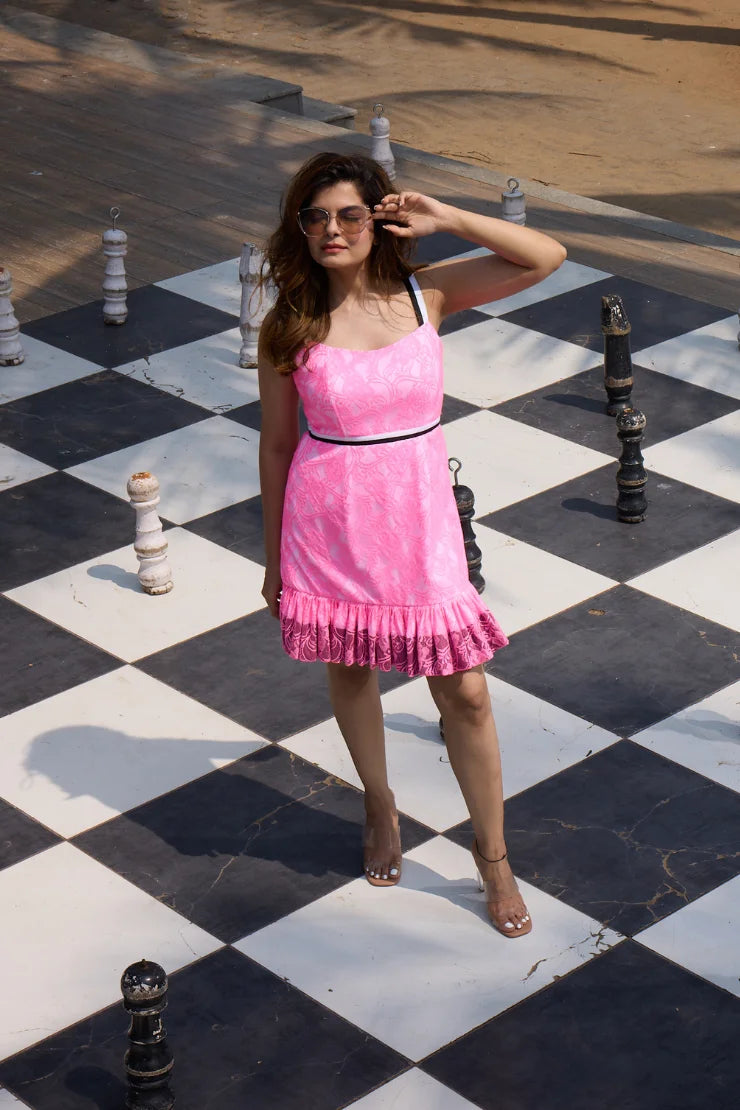 Strap Shoulder, Corset fit, Black and white lining, Pleated bottom