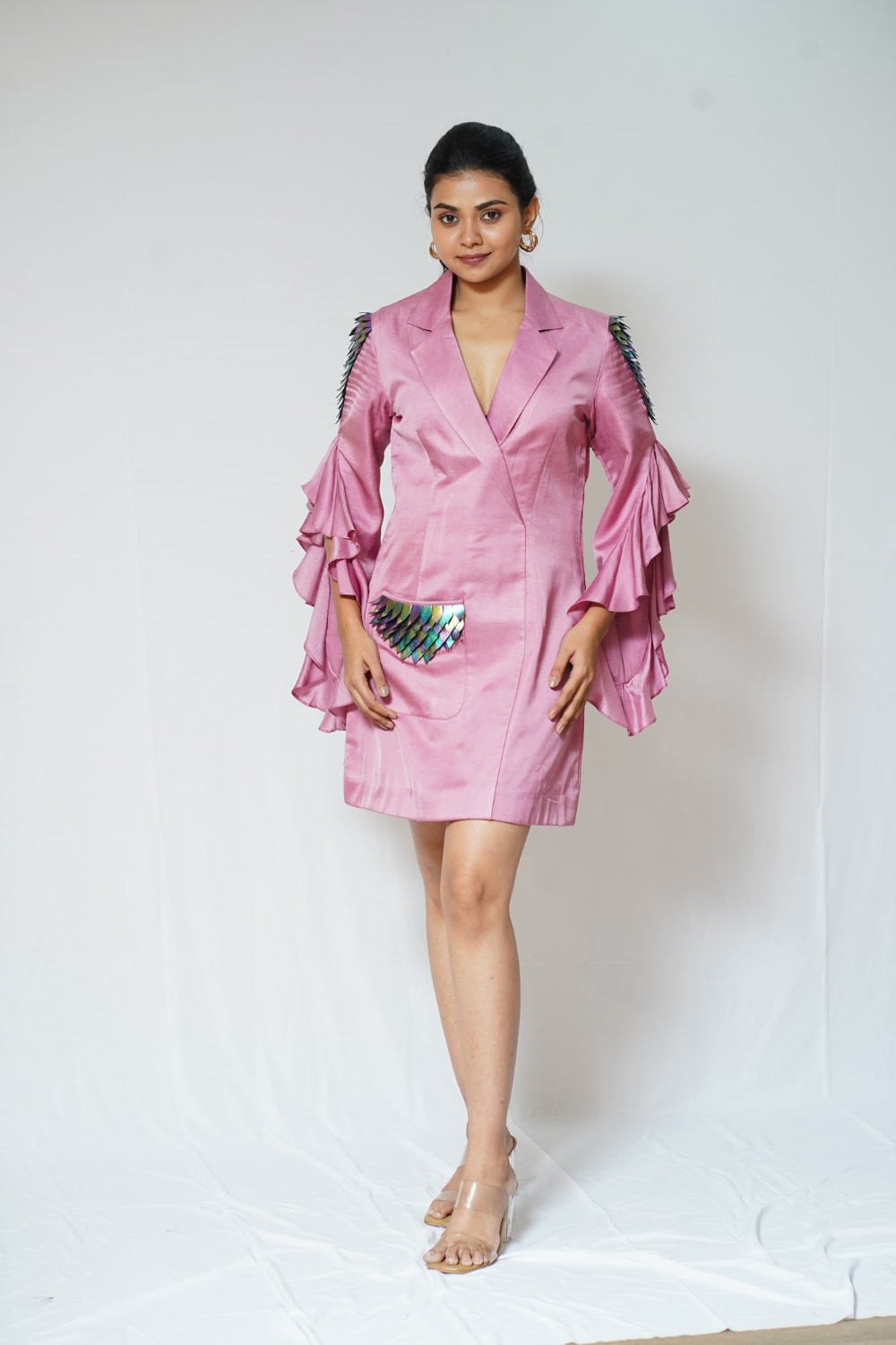 -Metallurgic embroidery on sleeves and pocket -Onion pink -Dress -Maniac sleeves -Double collar