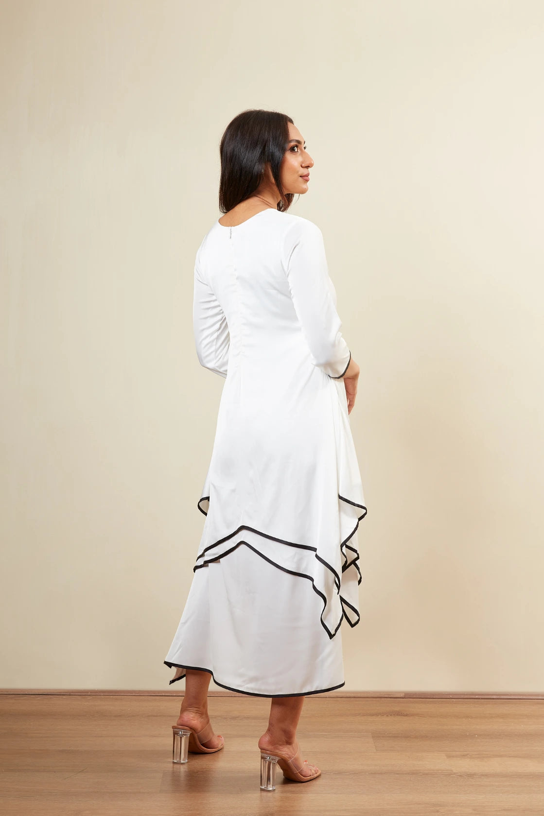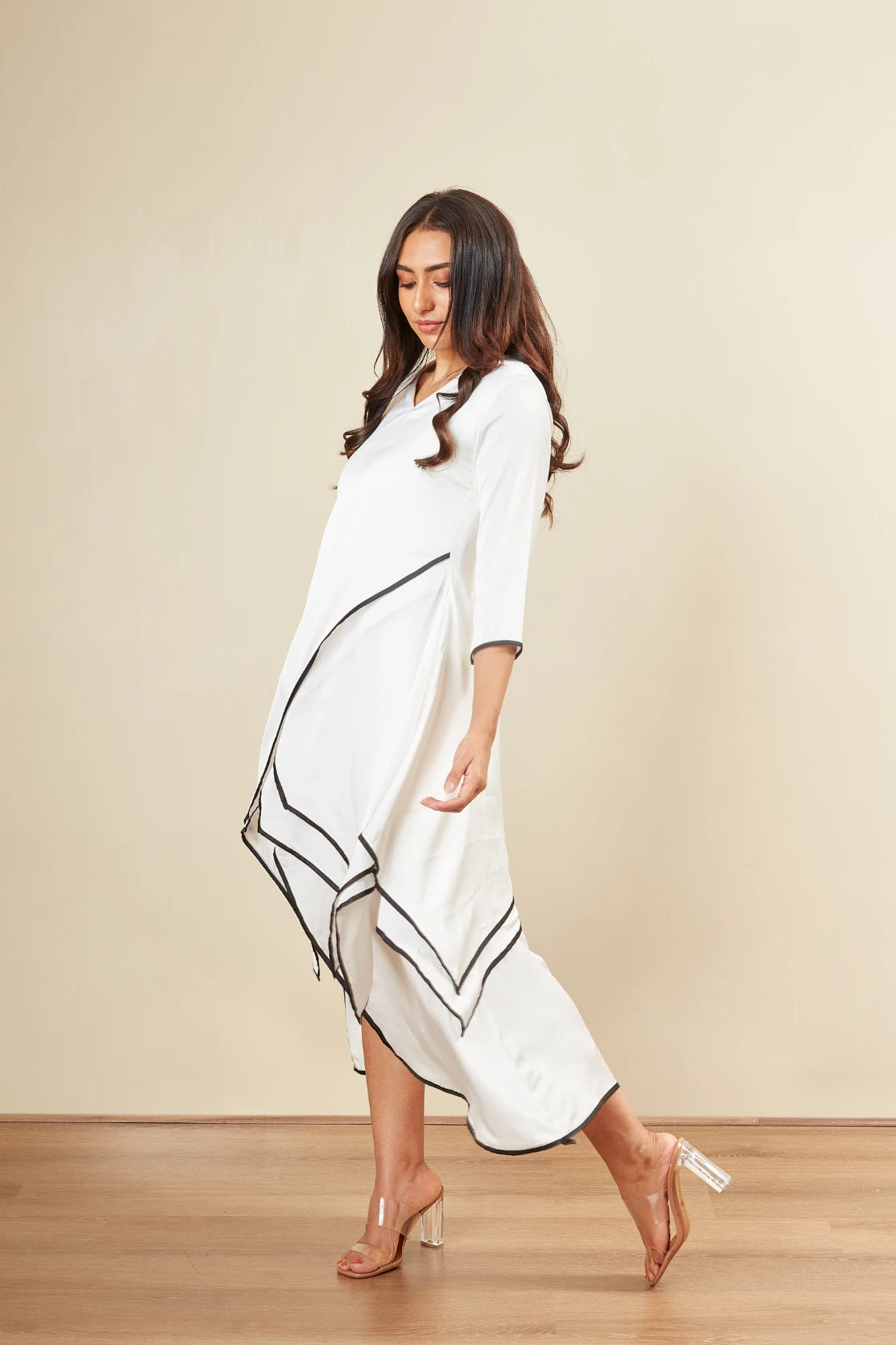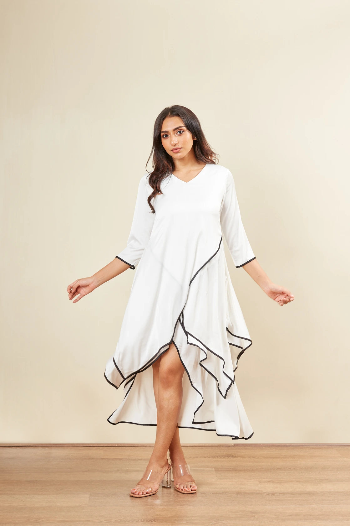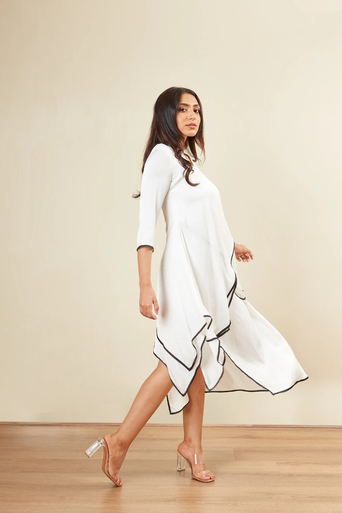 High-low -Boat neck -3/4th sleeve -Black border -A-symmetrical cut