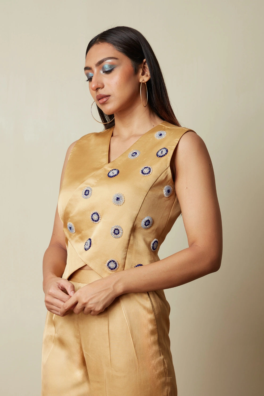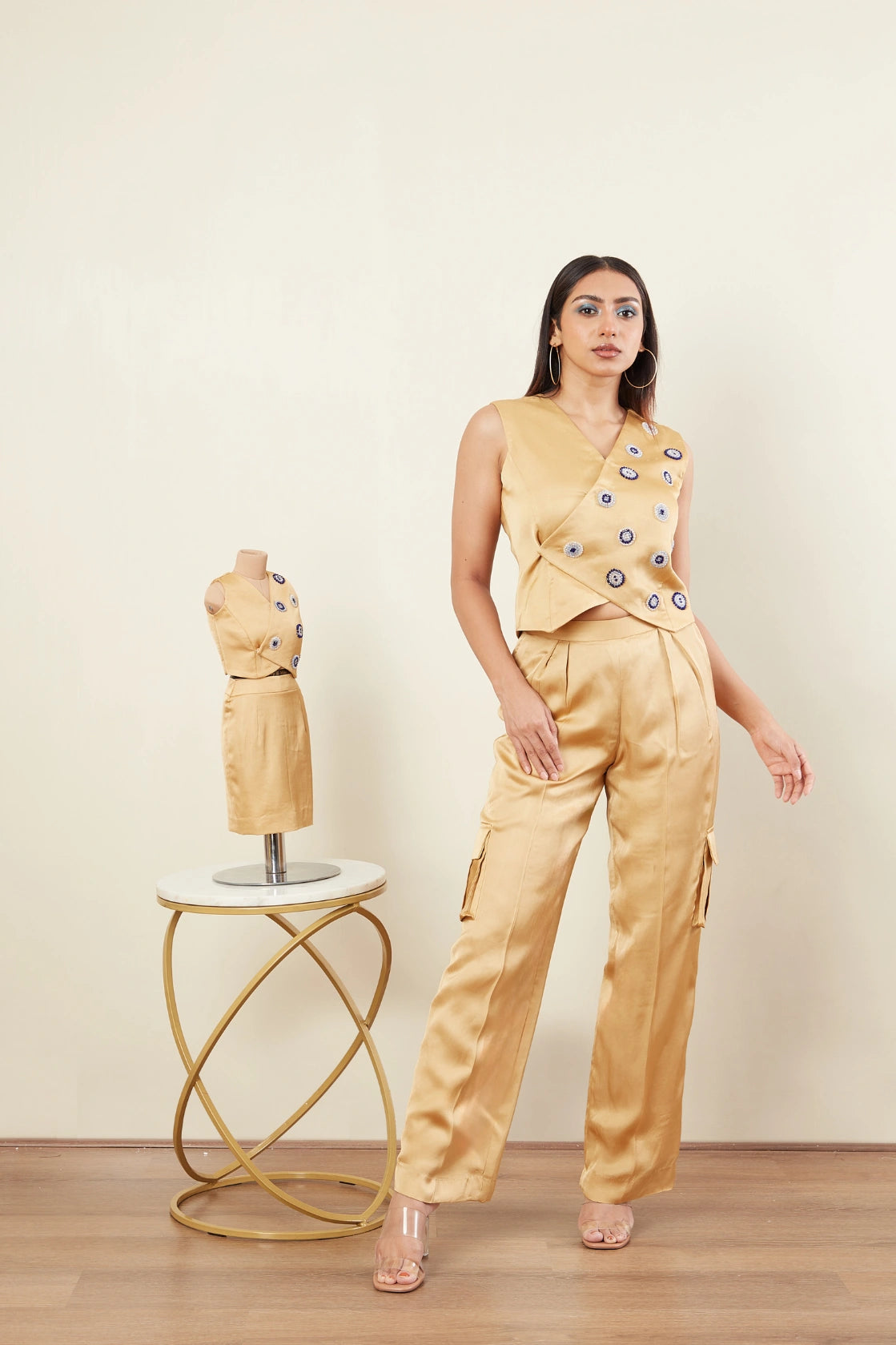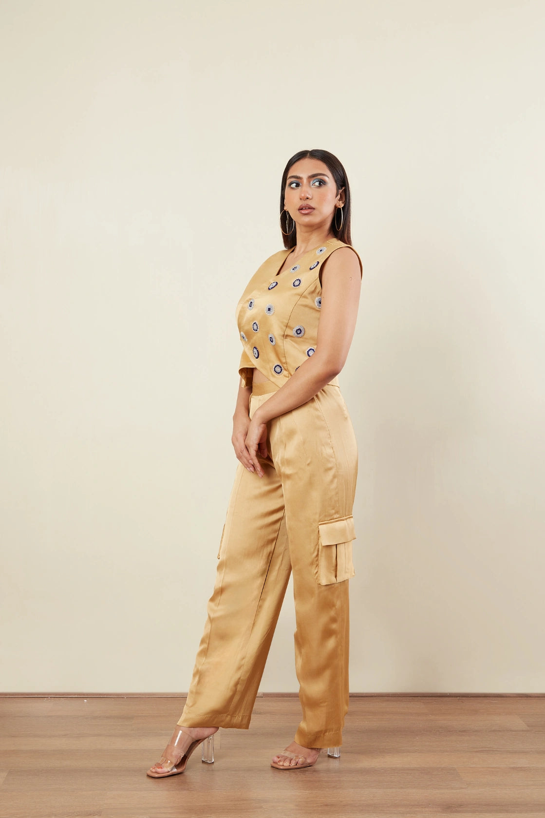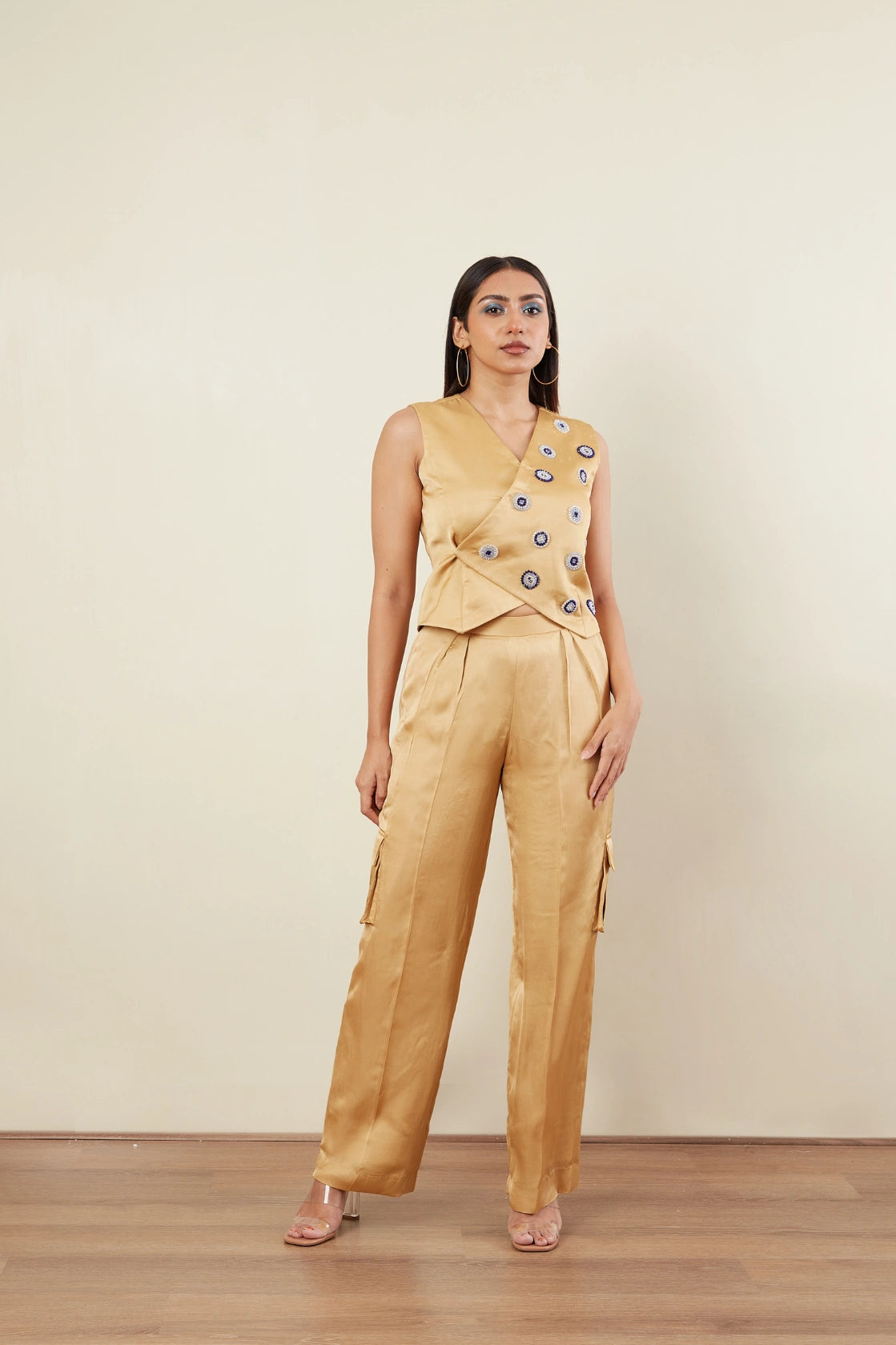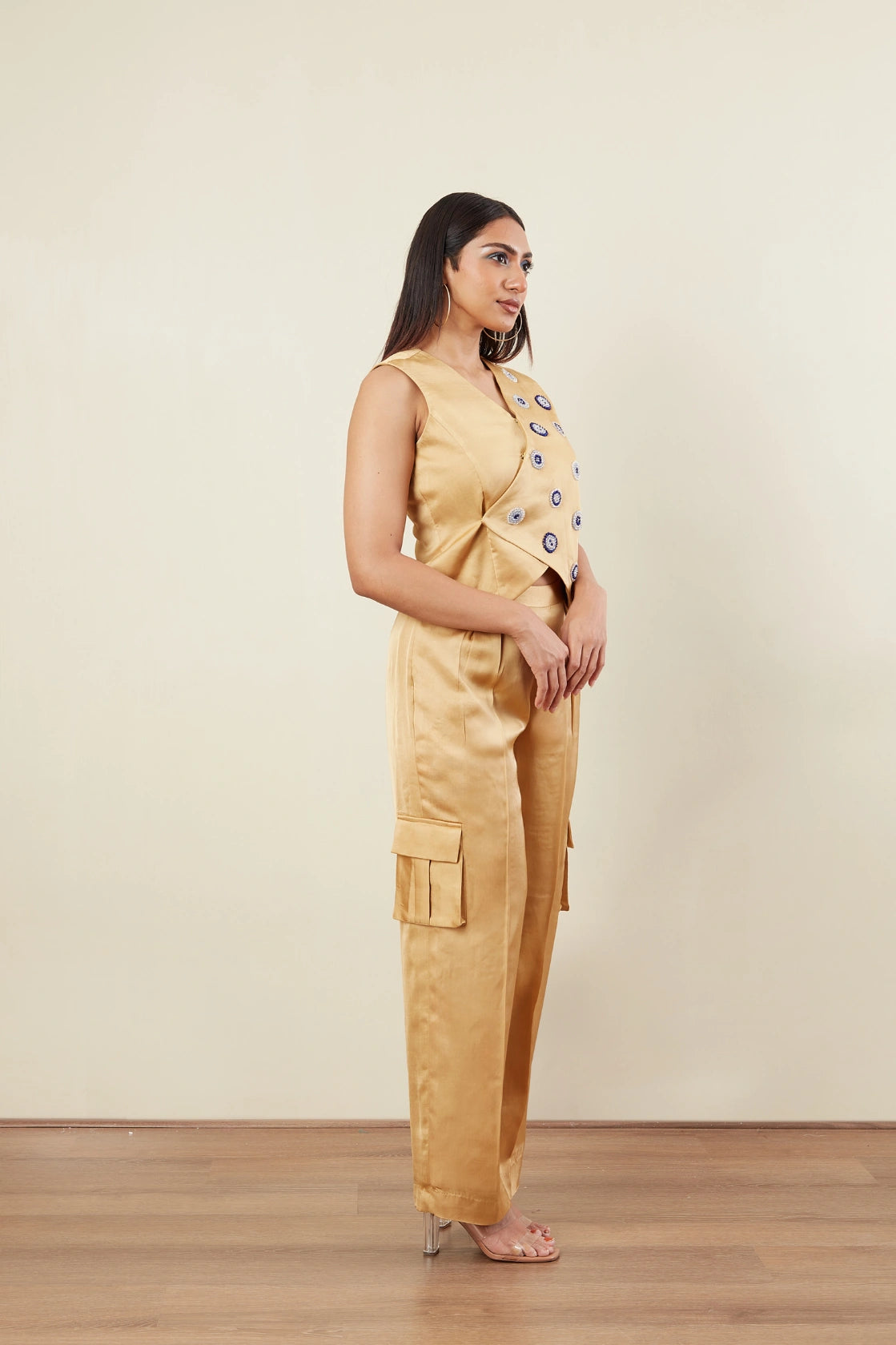 Over lap vest -Crystal bead Embriodery -Sleeveless -Cargo Pants