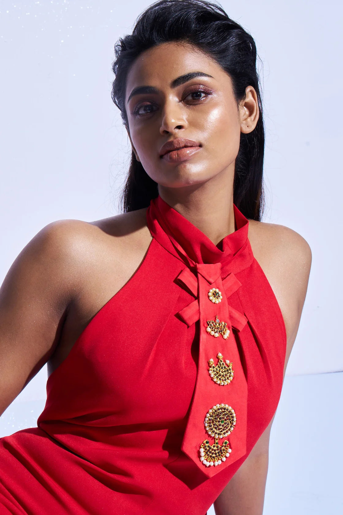 Jump Suit Halter Neck Embroidered Bow Tie Kemp Jewellery