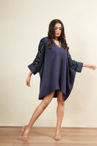 V neck -Applique on velvet -Raglan sleeve -Copper bead embroidery -Pearl embroidery -Copper tube work