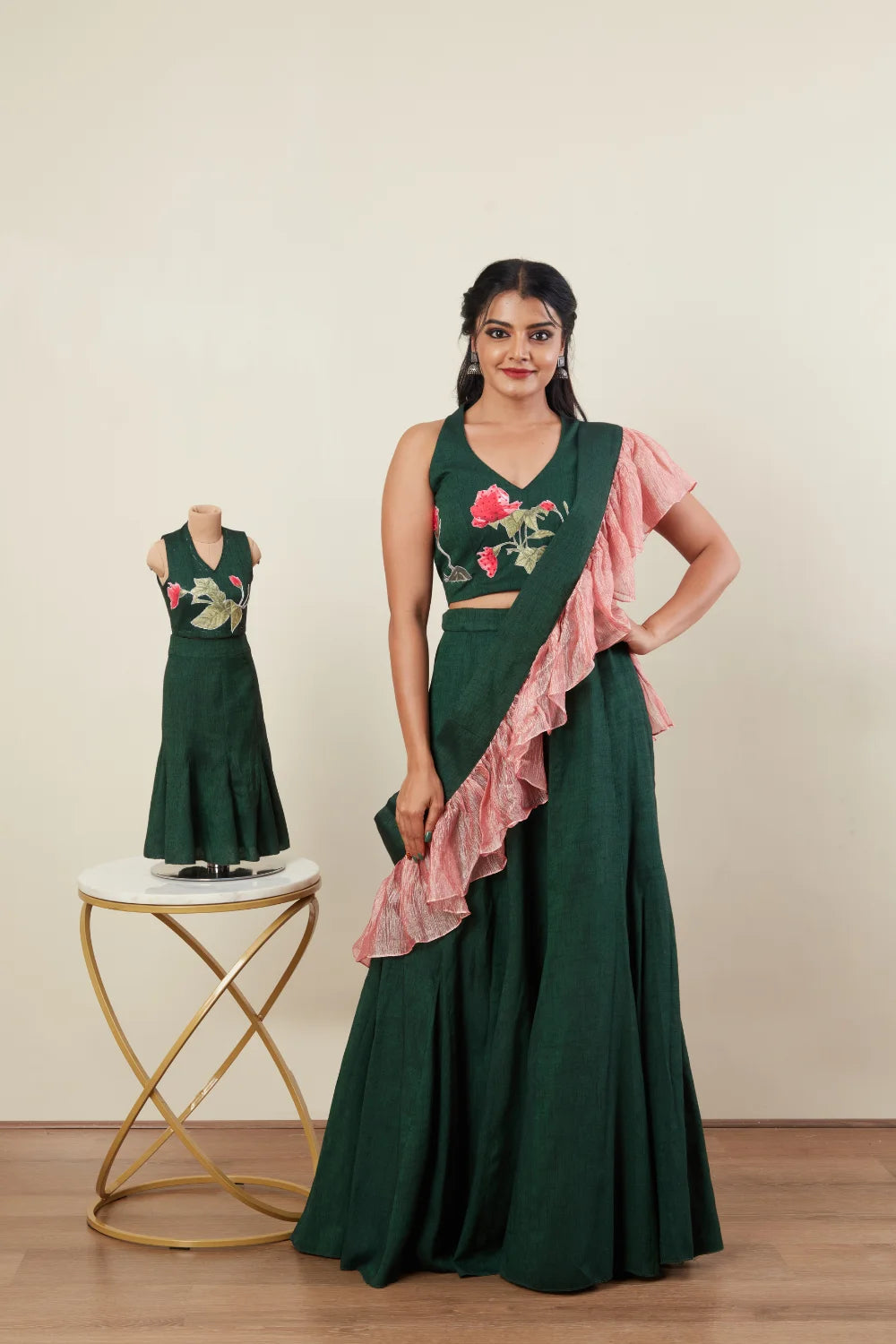 CHOCOLATE BROWN HANKERCHIEF SHIRT AND SKIRT