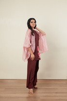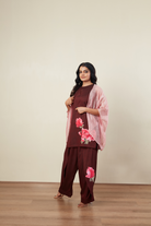 Floral print Applique work Sequence & Pearl Embriodery Close Neck Sleevless Crush Tissue cape Plazoo Pant