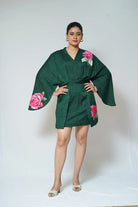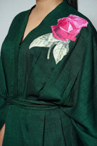 -Floral Appliqué -Bottle Green -Tie up dress -Kaftaan sleeves