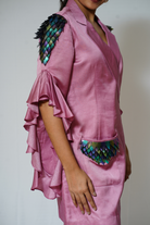 -Metallurgic embroidery on sleeves and pocket -Onion pink -Dress -Maniac sleeves -Double collar