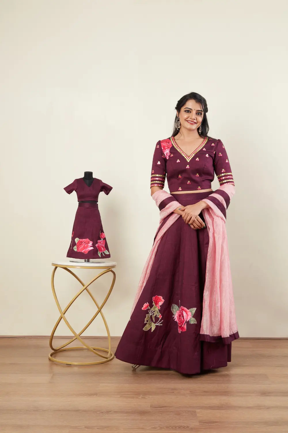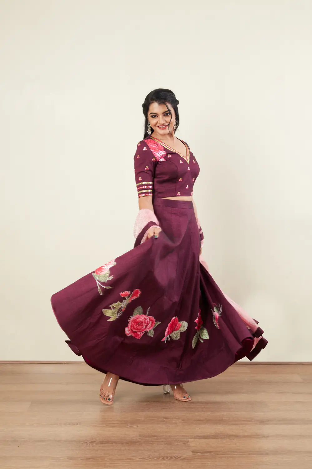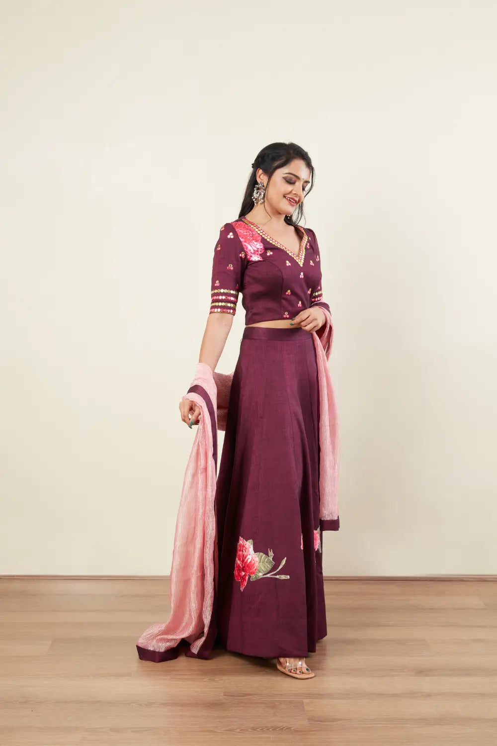 Floral print Applique work Sequence & Pearl Embriodery Multi Colur Mirror Embriodery Vide V neck Blouse Kali Leghanga Crush Dupatta