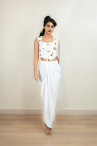 Corset Blouse,drape Skirt With Prestiched Pallu Kemp Jewellery, Embroiderd On Blouse And Pallu