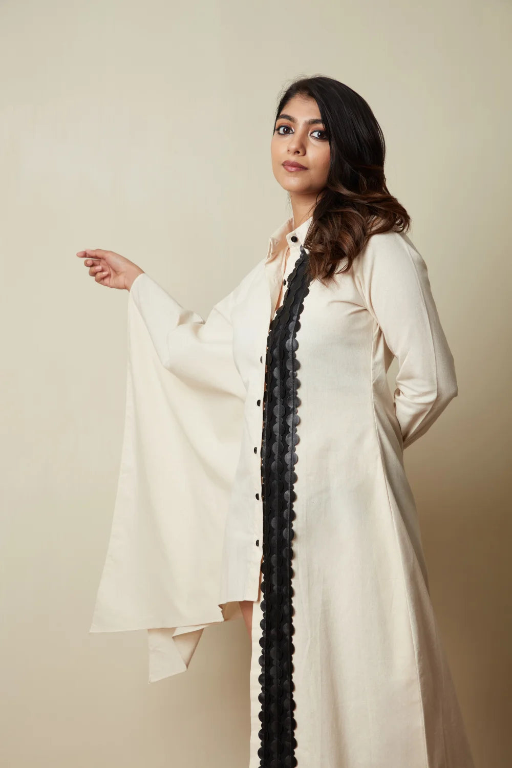 Black polka Embriodery Lazer cut Polka One Side khaftan one side Shirt shirt Collar Front open black button