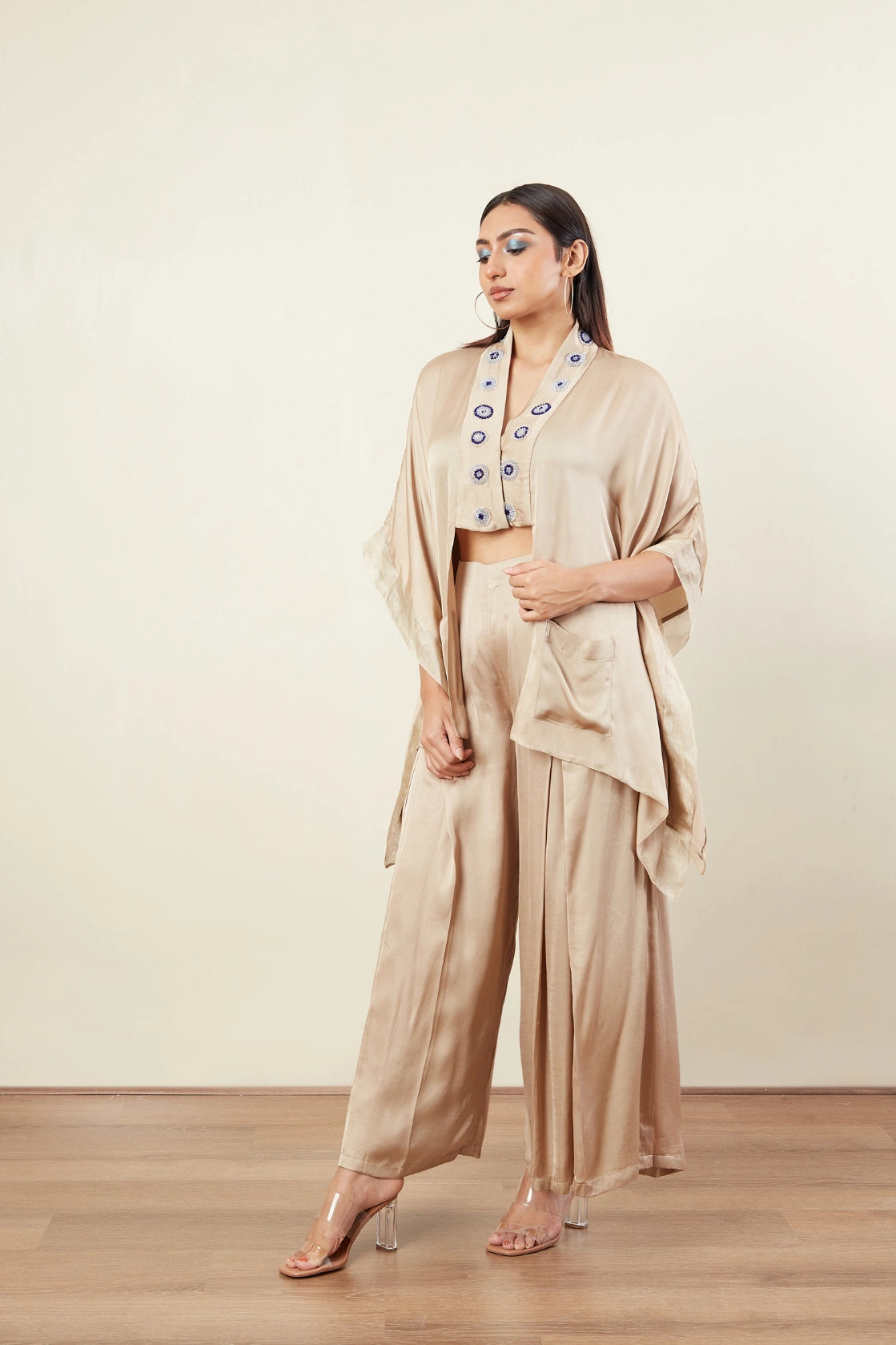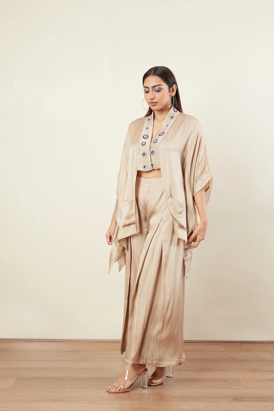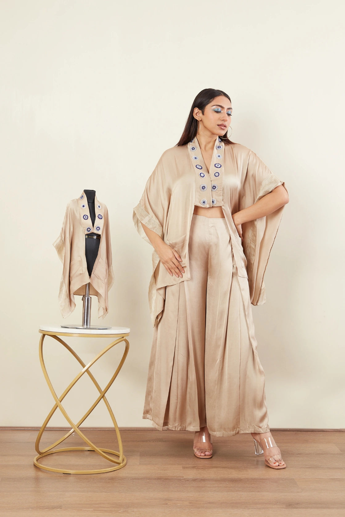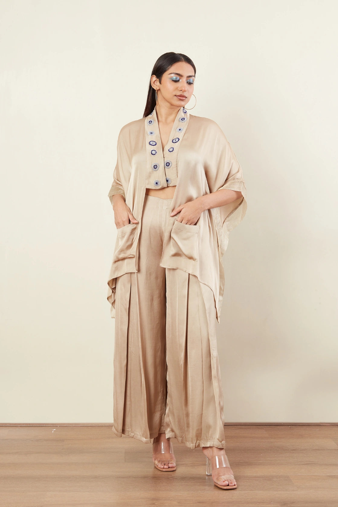 crystal bead embroidery -Overlap Vneck -Kaftan top -Pleated plazoo