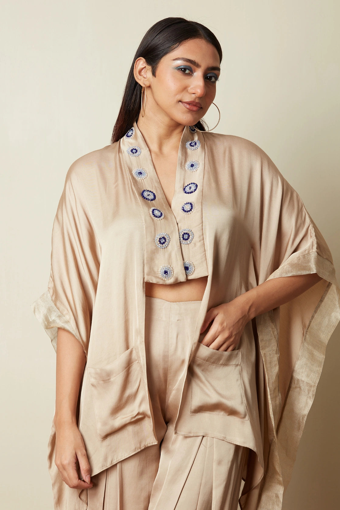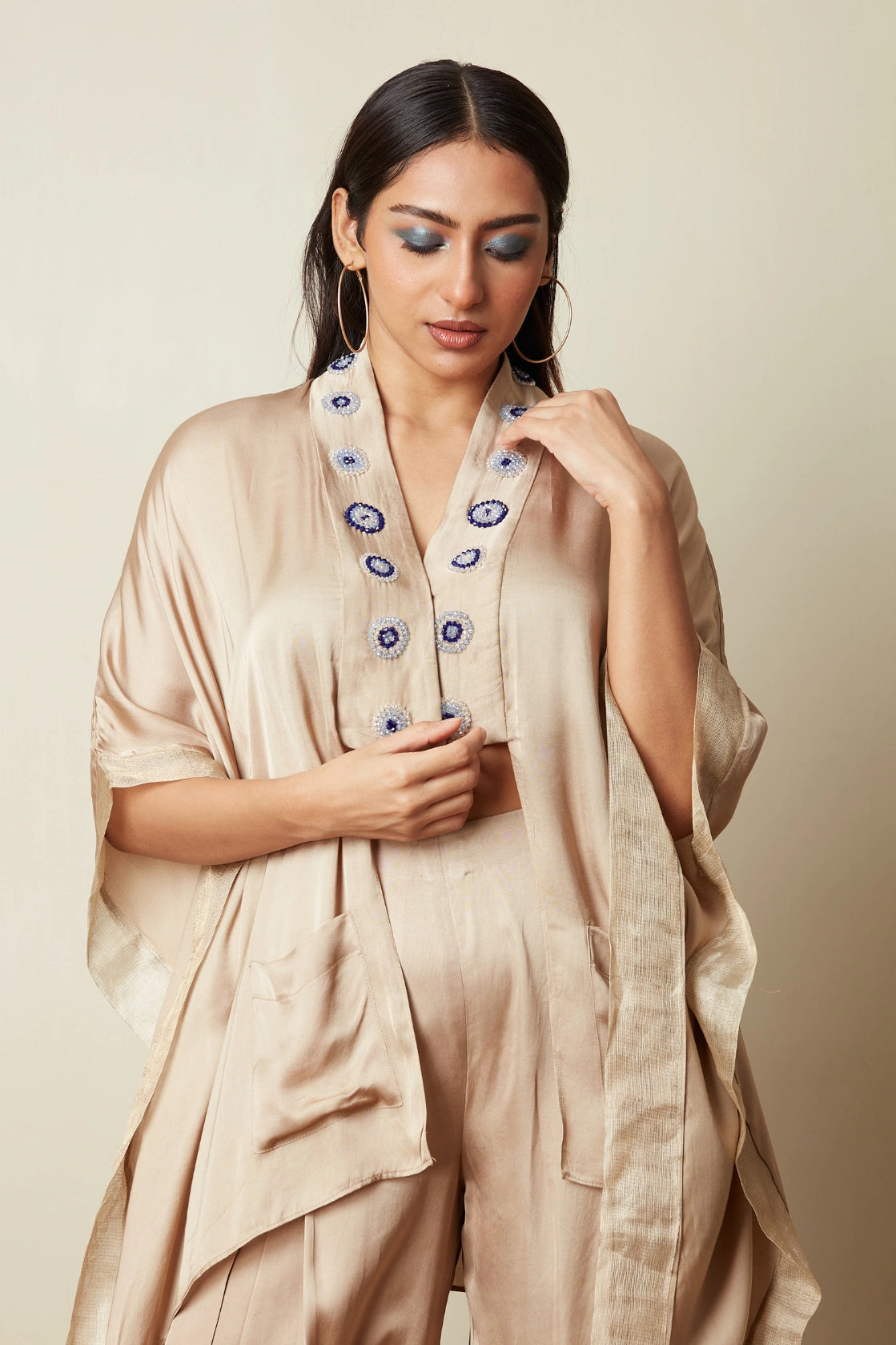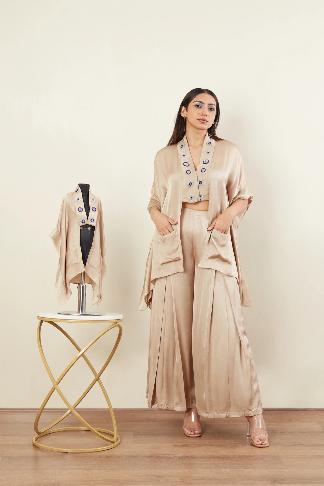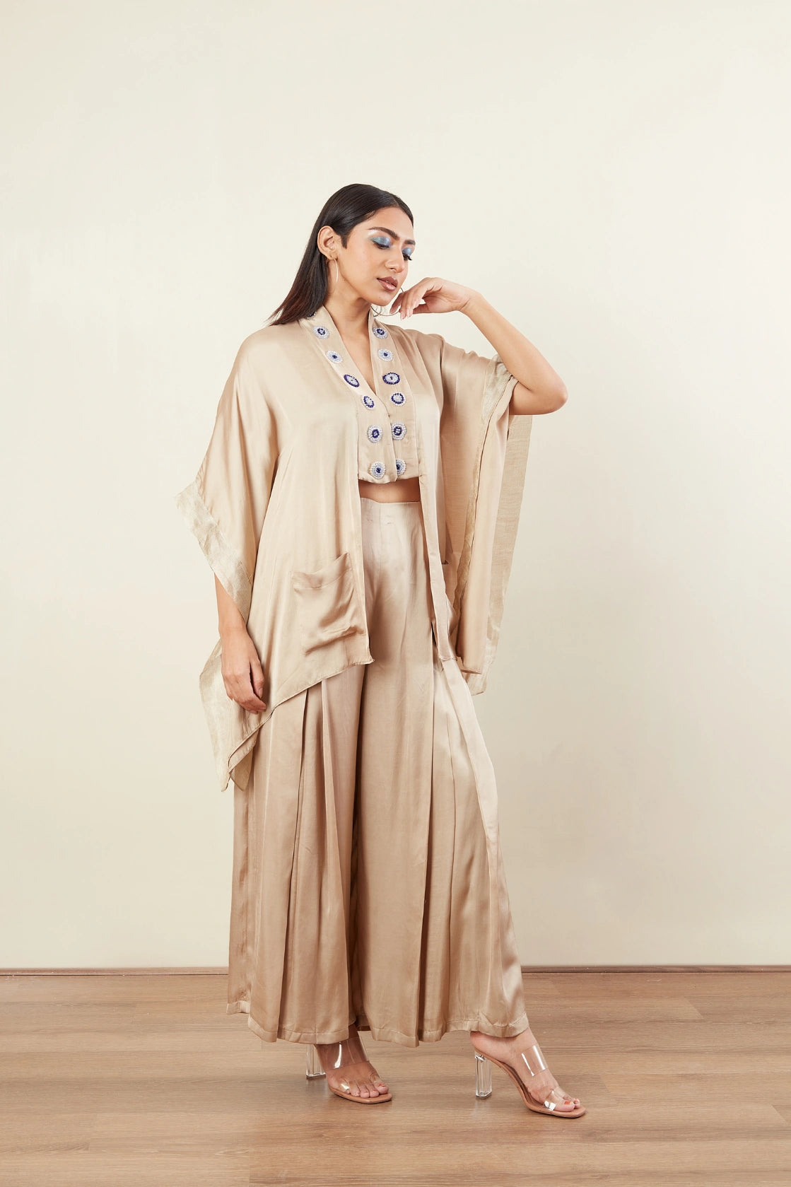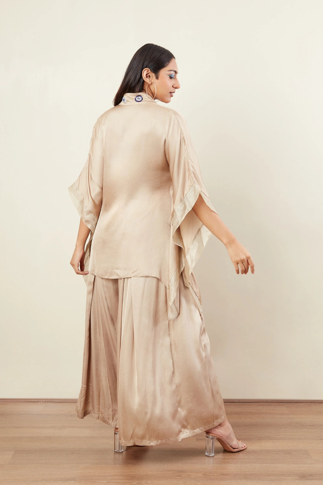 crystal bead embroidery -Overlap Vneck -Kaftan top -Pleated plazoo