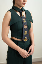 Oversize Collar -Crop Top -Collar with tie -Pleated trousers -South Indian Jewellery Embellishment