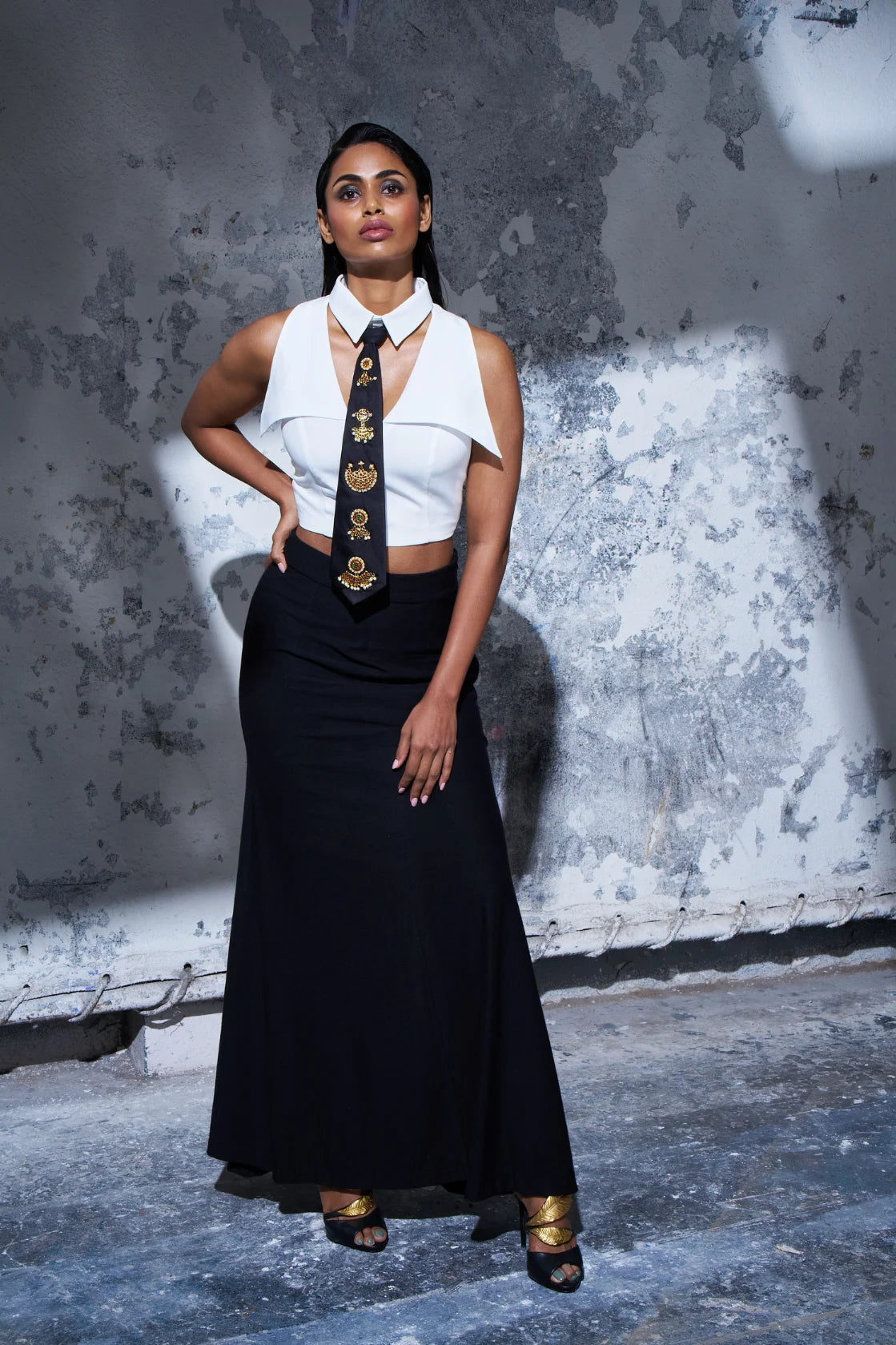 Halter Neck Shirt Collar Kemp Jewellery Embroidered Blazer Neck Piece Front Slit One Piece Dress