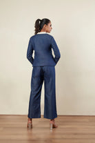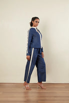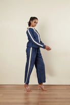 Metal Zipper -Silver Rock stud Embriodery -Elastic Bottom -Full Sleeve -Flair pants -White border with embroidery