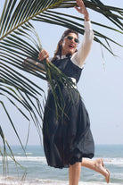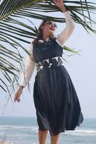 Shirt Collar, Back open, Bust joint, Black applique leather flower Embroidery Full Sleeves